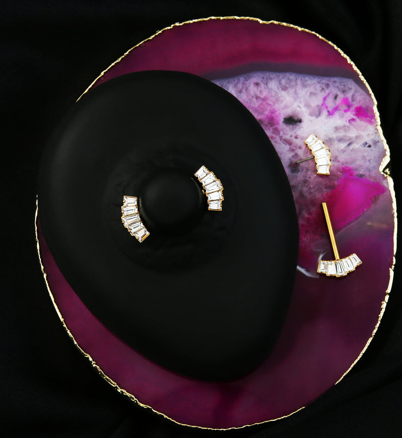Gold PVD Quinary Baguette CZ Threadless Titanium Nipple Barbell
