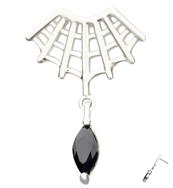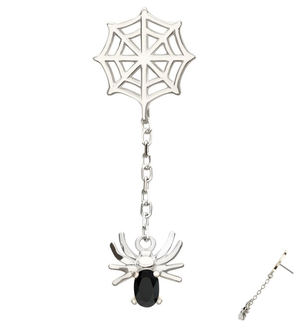 Black PVD Spiderweb Clear CZ Dangle Spider Internally Threaded Titanium Industrial BarbellBlack PVD Spiderweb Clear CZ Dangle Spider Internally Threaded Titanium Industrial Barbell