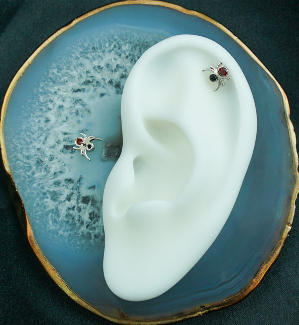 14kt White Gold Spider Black and Red Bezel CZ Threadless Top14kt White Gold Spider Black and Red Bezel CZ Threadless Top
