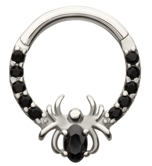 14kt White Gold Spider Black CZ Hinged Segment Ring14kt White Gold Spider Black CZ Hinged Segment Ring
