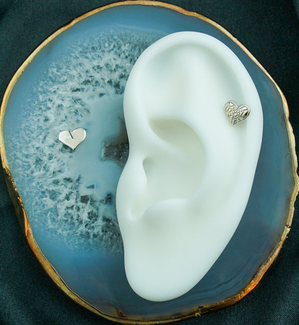 14kt White Gold Spiderweb Etched Heart Threadless Top14kt White Gold Spiderweb Etched Heart Threadless Top