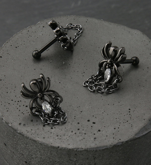 Black PVD Chained Spider CZ Cartilage BarbellBlack PVD Chained Spider CZ Cartilage Barbell