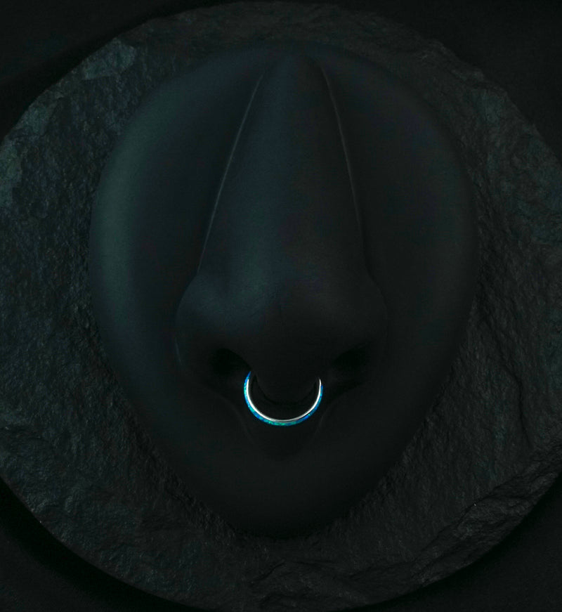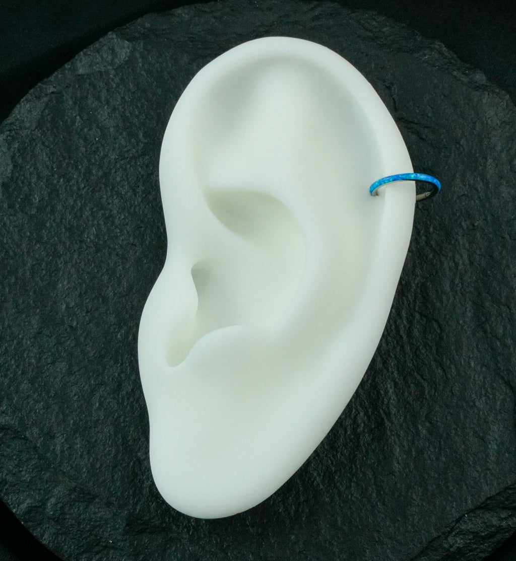 This Blue Opalite Orbed Hinged Segment Ring is a great option for your jewelry collection! Made of 316L stainless steel and featuring synthetic blue opalite, this hinged ring is perfect for septum or cartilage piercings. Available in sizes 16G and 14G, with an inner diameter of 5/16" (8mm) or 3/8" (10mm). Sold individually.