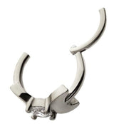 This CZ Bow Hinged Segment Ring is the perfect accessory for healed piercings. Made of 316L stainless steel, it features a convenient hinge that clicks closed for a secure fit. Sold individually and sized at 16G with a 5/16" (8mm) inner diameter, it's great for cartilage piercings.