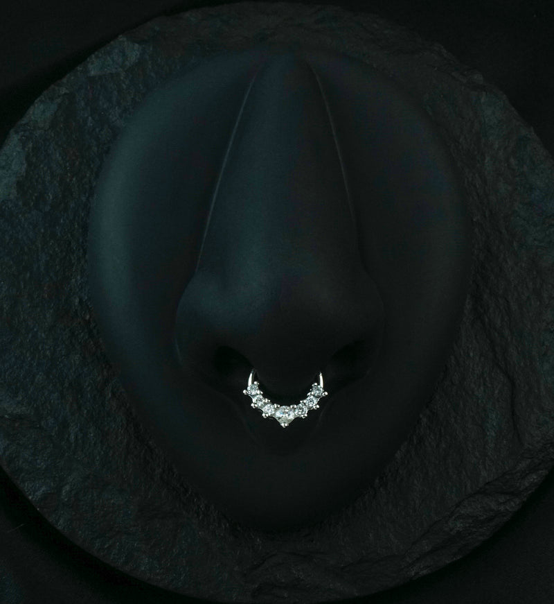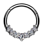Decorate your piercings with the dazzling Radiant Cluster Bead CZ Hinged Segment Hoop Ring. Made from 316L stainless steel, this hoop features clear CZ gems and a hinged segment for easy opening and closing. Great for septum or cartilage piercings! Available in 2 sizes for healed piercings. Sold individually.