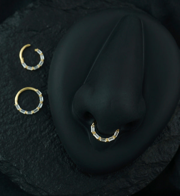16G 14kt White Gold CZ Gem Rim Clicker Ring16G 14kt White Gold CZ Gem Rim Septum Clicker