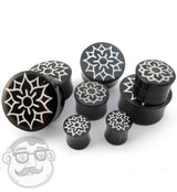 Sold in pairs (2 piece) Double flare Water buffalo horn Printed lotus design inlayed Pick from 0G - 1 inch