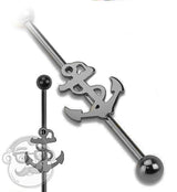 Ground yourself with our black anchor industrial barbell! The 14g barbell is constructed from 316L stainless steel with ion-plated black color and 1 ½” barbell length. Central black anchor pendant shows off your serene darkest depths! This item is sold individually, hit the plus sign to order multiples.