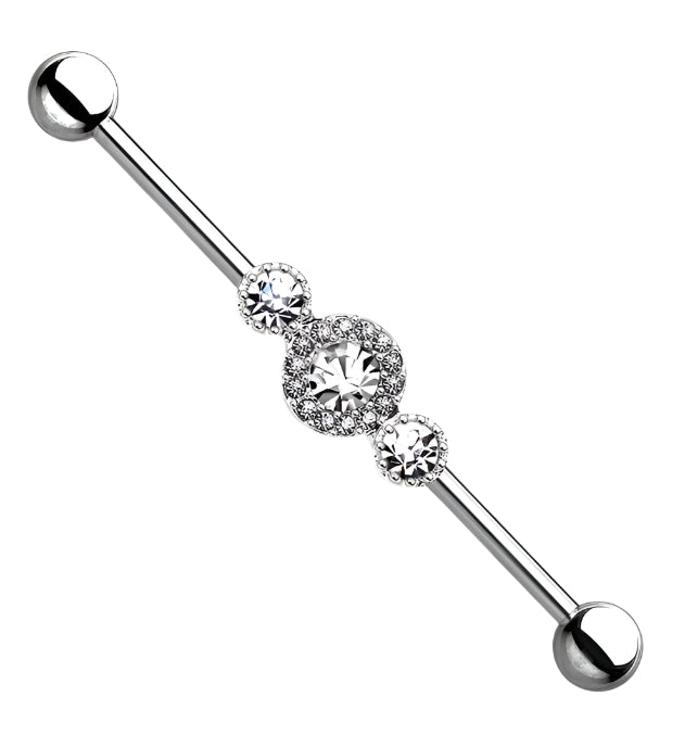 Triple Clear CZ Stainless Steel Industrial Barbell