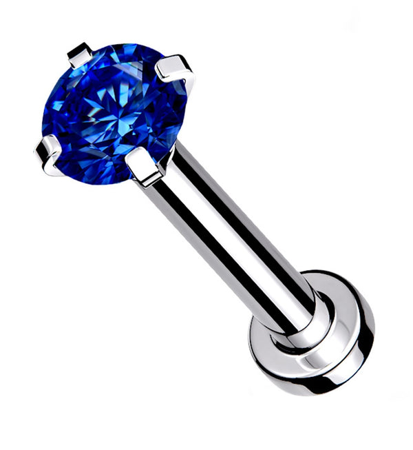 Tanzanite CZ Prong Internally Threaded Labret
