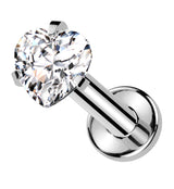 Heart Clear CZ Internally Threaded Titanium Labret Post