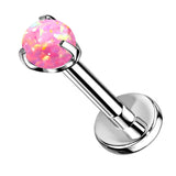 Sizes: 20G, 18G, 16G Length: 5/16" (8mm) ASTM f-136 Ti-6AL-4V-ELI Titanium Synthetic opalite Threadless 3mm opalite ball Pick your size