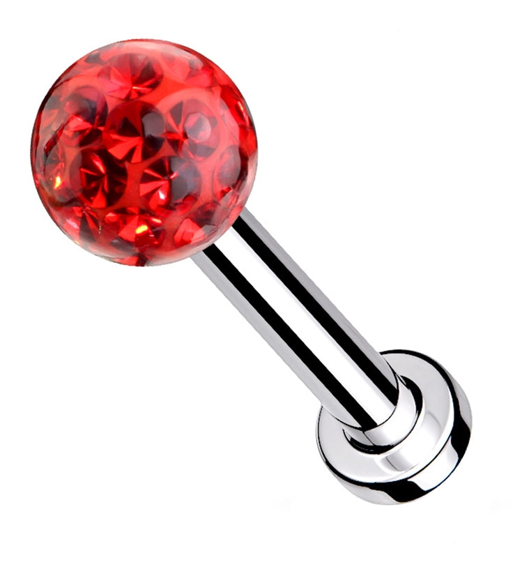 Make your piercing glow with this red glitterball labret! Available in size 16 guage with a 5/16" (8mm) length, this labret is a good option for labret, lobe, or cartilage piercings. The 3mm epoxy glitterball sparkles from every direction, and it is internally threaded to ensure a secure hold. Made from 316L stainless steel, so this should only be worn in healed piercings. Sold individually.
