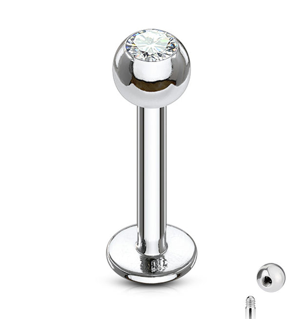 Bezel Clear CZ Titanium Threadless LabretFlat Clear CZ Titanium Threadless Labret