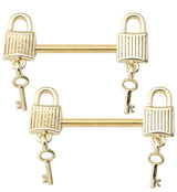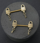 Gold PVD Dangling Key Lock Stainless Steel Nipple Barbell Sale price$14.95
