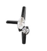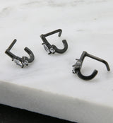 Fun must-have for your nose piercing! This curved nose ring has a elegnat cubic zirconia gem design made from a marquise cut gem and a round cut gem. Made from black pvd on 316L stainless steel. Size is 18G. Length is 5/16" (8mm). Sold individually. For healed piercings.