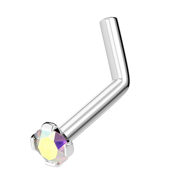 White Opalite Prong Set L Bend Nose StudWhite Opalite Prong Set L Bend Nose Stud