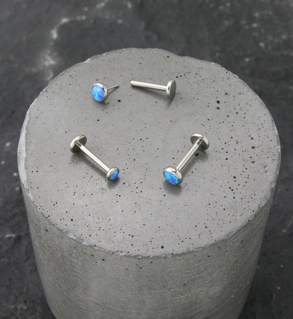 Flat Blue Opalite Titanium Threadless LabretFlat Blue Opalite Titanium Threadless Labret
