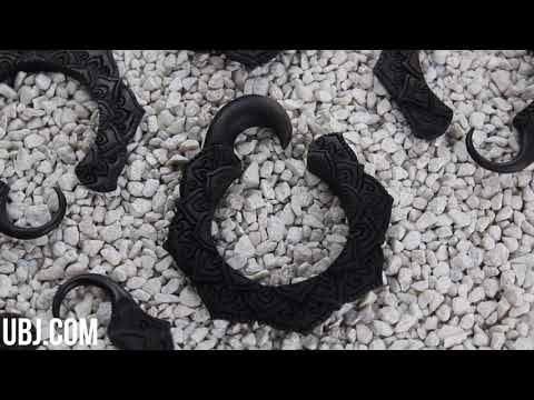 Bring a playful, natural touch to your style with these Mandala Wooden Hangers. Sold in pairs, each handcrafted piece showcases a unique carved mandala flower design made from areng wood. Each piece will be one of a kind in pattern and color due to the nature of the wood. We will do our best to find you a complementing pair. Choose your size from 12G (2mm) up to 1/2" (12mm) to fit healed lobes perfectly. Do not use for ear stretching.