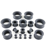 This Kaos Grey Silicone Tunnels set includes two pieces made from high-grade, US-made silicone, available in sizes from 6G (4mm) to 1 inch (25mm). With 8mm (5/16") wearable surface from 6G to 5/8" and 3/4" to 1 inch, they offer a soft and flexible fit. Boasting the highest quality silicone for extended use, remember to keep them clean with a mild, non-scented, antibacterial soap and water. Not for ear stretching.