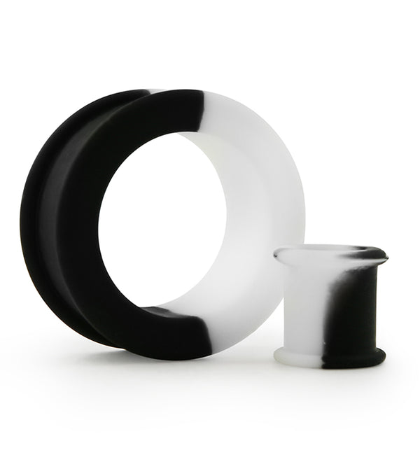 Black And White Double Flare Silicone Tunnel PlugsBlack And White Double Flare Silicone Tunnel Plugs