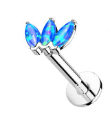 14kt White Gold Empress Triple Blue Opalite Threadless Labret