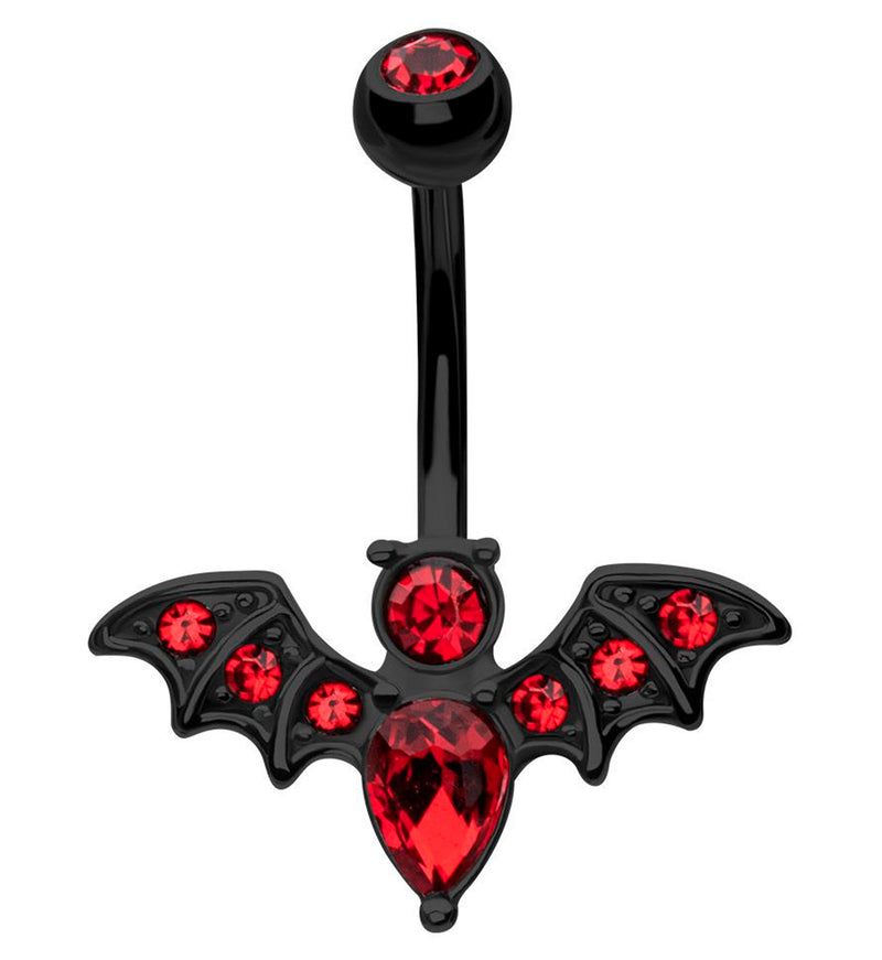 Black PVD Bat Red CZ Stainless Steel Belly Button Ring