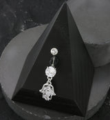 Hamsa Hand Baguette CZ Dangle Stainless Steel Belly Button Ring