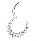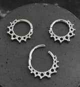 Hinged segment ring made from 316L stainless steel with a hoop design that has a beaded hollow design along the bottom. Size is 16G with an inner diameter size of either 5/16" (8mm) or 3/8" (10mm). The hinged design makes this piece easy to insert and remove. Sold individually (1pc).