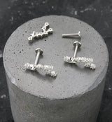 Internally threaded labret that consists of clear cz gems in the shape of the constellation of the Leo zodiac. Pin and base are made from 316L stainless steel and the constellation design is made from rhodium plated brass so it may tarnish over time if exposed to extreme moisture conditions. Choose your gauge size between 18G and 16g. Length is 5/16" (8mm). Constellation size is 14mm x 6mm. Flat back: 4mm. For healed piercings. Sold individually (1pc).