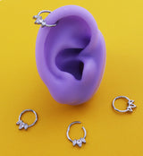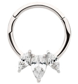 Sepal Clear CZ Stainless Steel Hinged Segment Ring