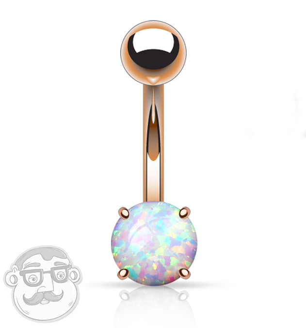 Rose Gold PVD Simple Opalite Stainless Steel Belly Button Ring