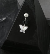 White Opalite Butterfly CZ Stainless Steel Belly Button Ring
