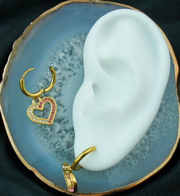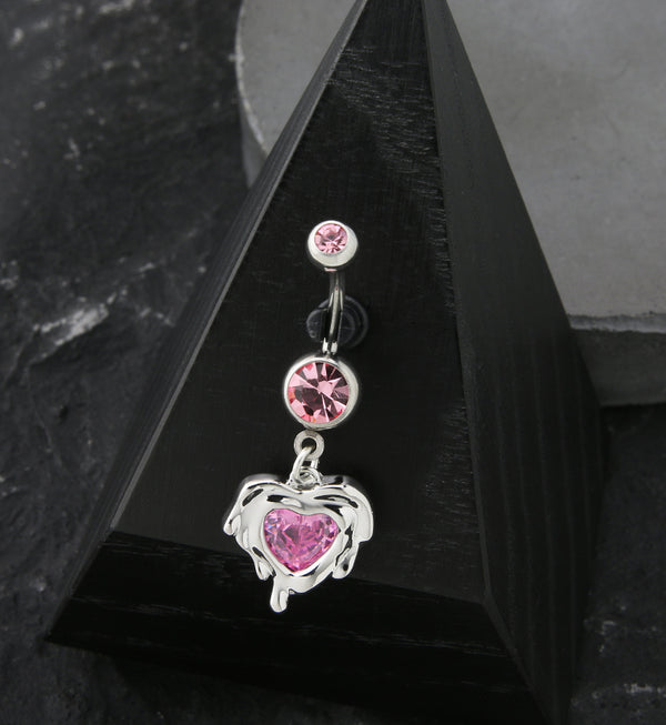 Dripping Heart Dangle Pink CZ Stainless Steel Belly Button RingDripping Heart Dangle Pink CZ Stainless Steel Belly Button Ring