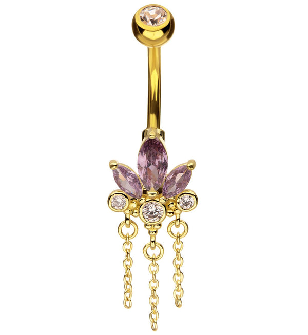 Gold PVD Rainbow Aurora Crystal Dangle Stainless Steel Belly Button RingGold PVD Rainbow Aurora Crystal Dangle Stainless Steel Belly Button Ring