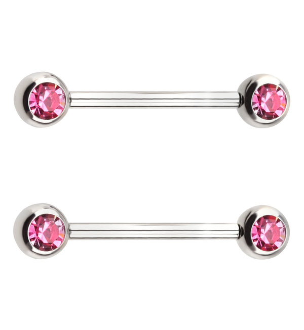 Double Pink CZ Stainless Steel Threadless BarbellDouble Pink CZ Stainless Steel Threadless Barbell