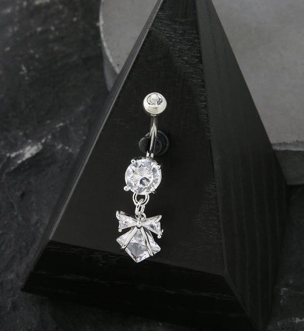 Bow And Rhombus CZ Dangle Stainless Steel Belly Button RingBow And Rhombus CZ Dangle Stainless Steel Belly Button Ring