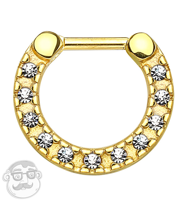 Gold PVD Triple Beaded Clear CZ Stainless Steel Hinged Segment RingGold PVD Triple Beaded Clear CZ Stainless Steel Hinged Segment Ring