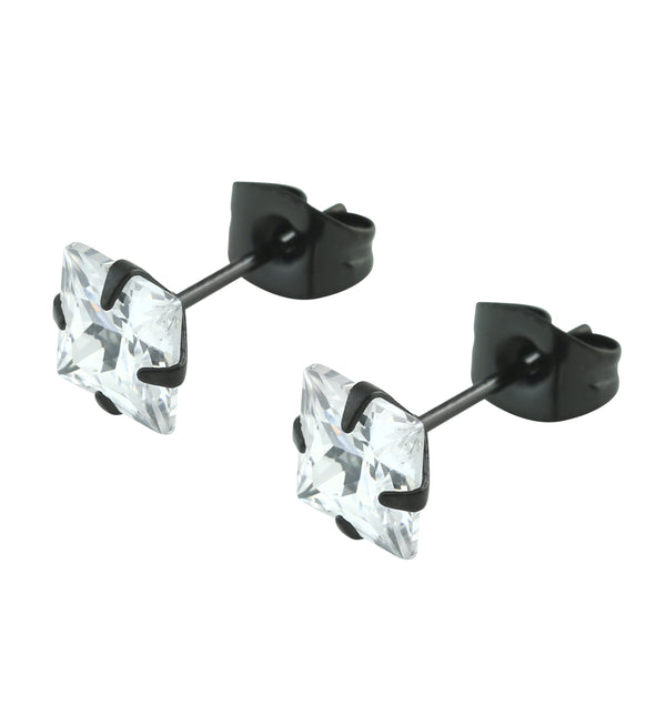 Black PVD Heart CZ Prong Set Stainless Steel Barbell