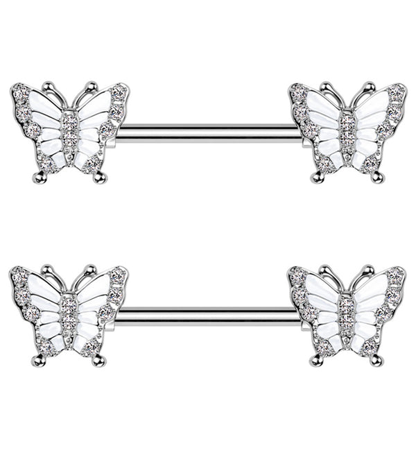 White Iridescent Gem Stainless Steel Nipple Ring BarbellWhite Iridescent Gem Stainless Steel Nipple Ring Barbell