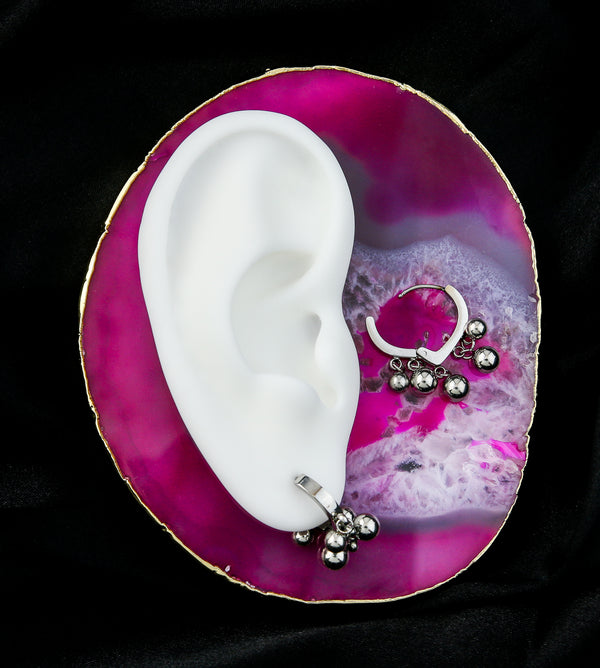 Paw Print Stainless Steel Hinged Hoop Huggie Dangle EarringsPaw Print Stainless Steel Hinged Hoop Huggie Dangle Earrings