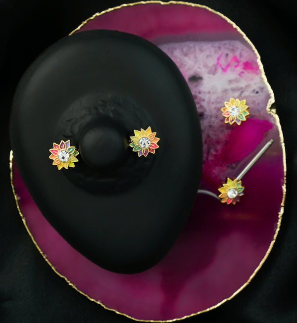 Gold PVD Blossom Clear CZ Stainless Steel L Bend/Stud/Hoop Variety Pack (6 Pack)Gold PVD Blossom Clear CZ Stainless Steel L Bend/Stud/Hoop Variety Pack (6 Pack)