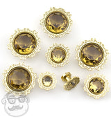 5/8" Golden Floral CZ Stainless Steel Plugs