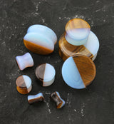 Stone plugs made from half white opalite stone and half tigers eye stone. These are handcrafted and polished with a round shape. Due to the nature of the natural stone, each plug may be slightly different in color and design, but we’ll do our best to provide you with a matching pair. Available in the following sizes: 2G, 0G, 00G, 1/2", 9/16", 5/8", 3/4", 7/8", 1 inch, 1 & 1/8", 1 & 1/4". Wearable area is about 9mm - 10mm. Full length is about 11mm-12mm with 1.5 to 2mm flares. Sold in pairs (2pcs).