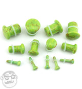 Green Howlite stone plugs that includes "O" rings and is offered in a range of sizes from 8G (3mm) to 1/2" (12mm) and is 12mm in length. The plugs have been polished to a smooth, glossy finish, perfect for daily wear. Sold in pairs (2pcs).