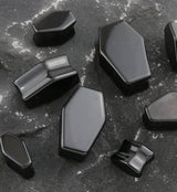 Handcrafted coffin plugs made from natural obsidian stone. Each coffin plug is 100% unique in pattern and color. We will do our best to find you a matching pair. Double flares. Wearable area: 8mm - 9mm. Flare is 2mm with length of 12mm. Sizes can vary +/- 1mm. Sold in pairs (2pcs). For healed lobes.