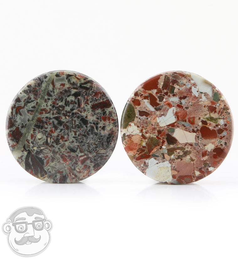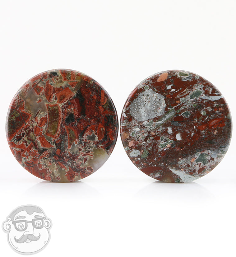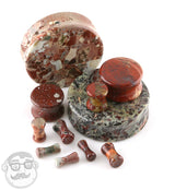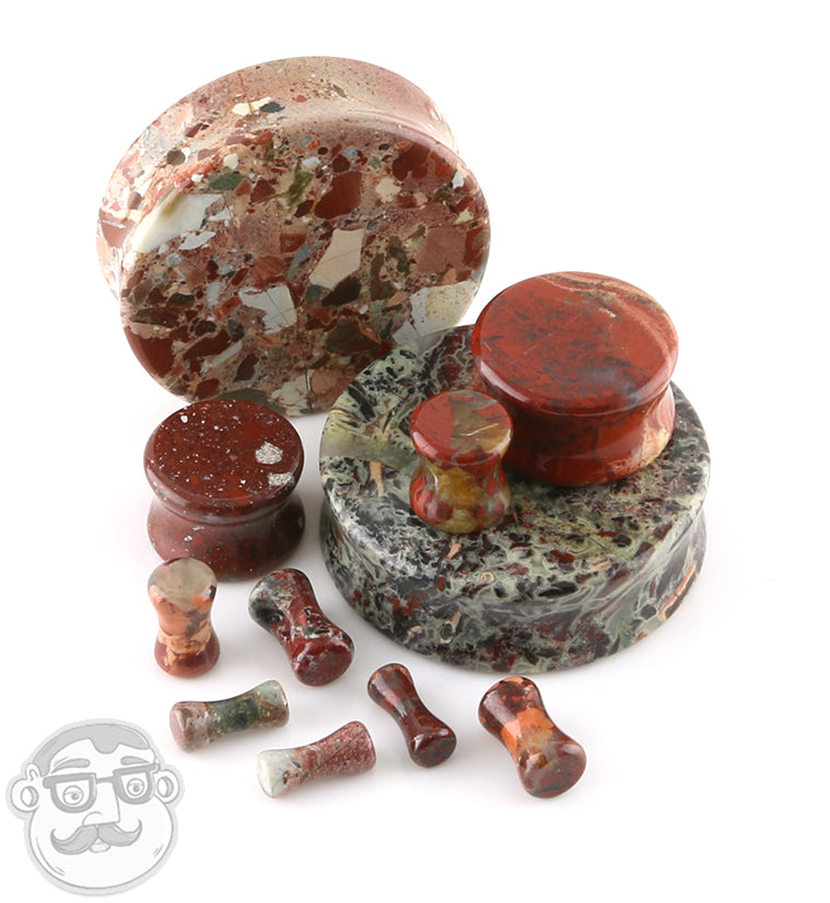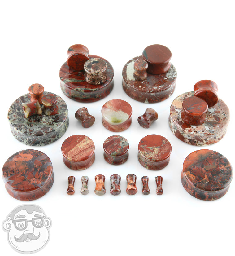 Add some natural stone plugs to your style with our handcrafted Red Brecciated Jasper Stone Plugs. Sold in pairs, each plug is 100% unique with its own color and pattern. The double flare design and flat sides provide a secure fit. Perfect for healed lobes - do not use for stretching.