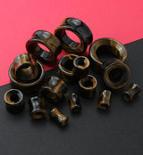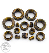 Tiger Eye Double Flare Tunnels: Tiger’s Eye Stone is a quite captivating sight as light reflects brightly and differently from every angle. Remedial properties include deterring negativity clouding one's thought process to improve focus of the mind's eye. Uplifting and motivating, this stone is your spiritual cup of coffee for workplace situations or just a creativity boost. These semi precious stone plugs have double flares and smooth flat front and back sides.