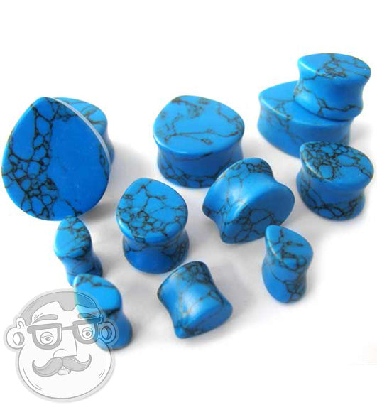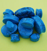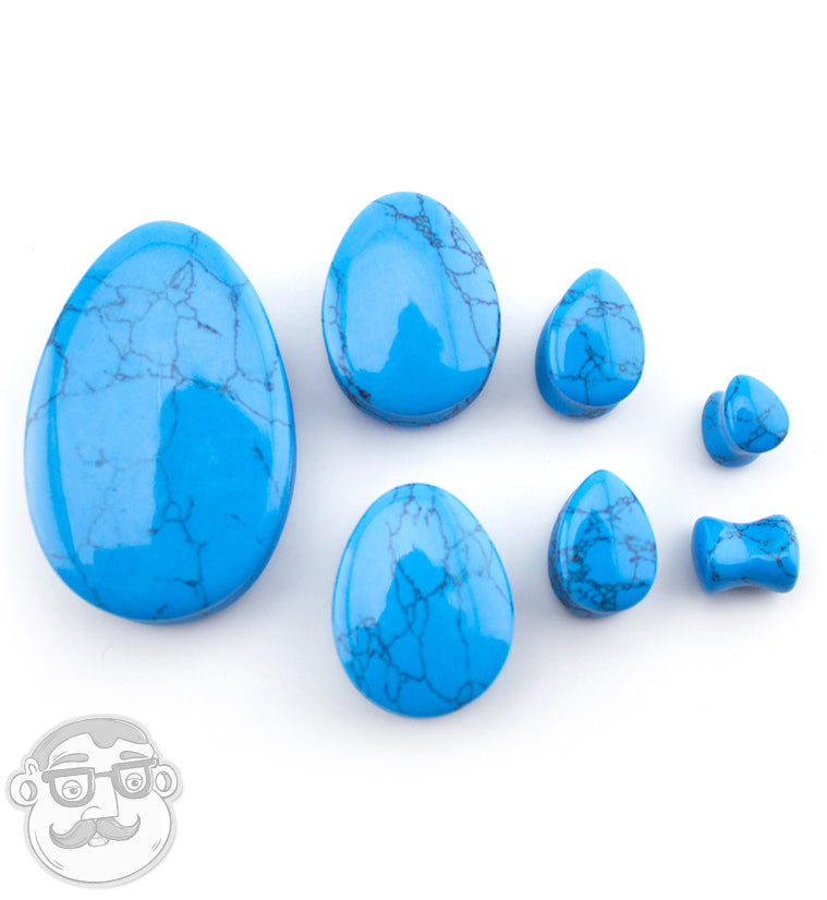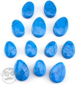 Sold in pairs (2pc) Double flares Teardrop shaped Pick from 2G - 1 & 1/2" inch Not for freshly stretched ears Howlite stone dyed turquoise Polished & smooth 12mm Wearable Area NOTICE: Each and every plug is slightly different due to the nature of the stone. We do our best to give you a matching pair Approximate measurements in the size dropdown 10mm wearable area