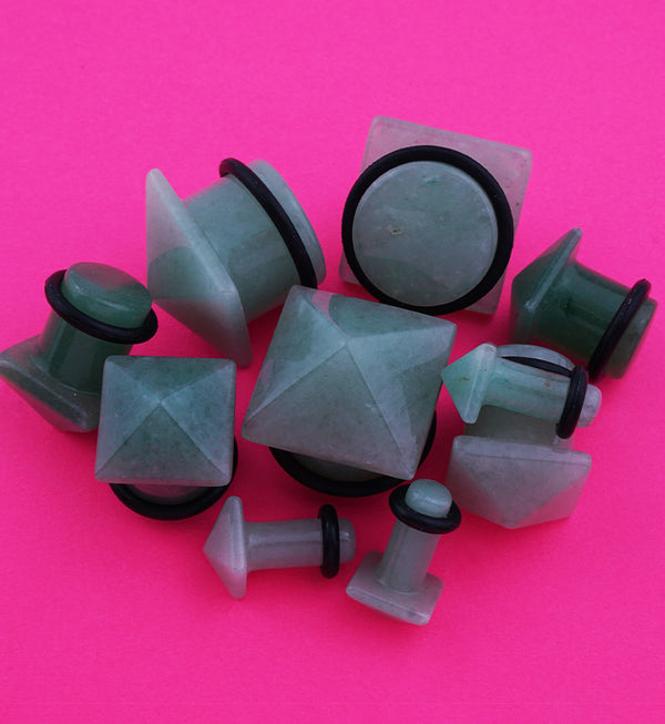 Aventurine Stone Plugs with Micro Obsidian Inlay